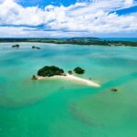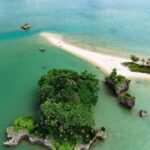 從沖繩本島北部名護市的奧武島的樹Full海灘出發,